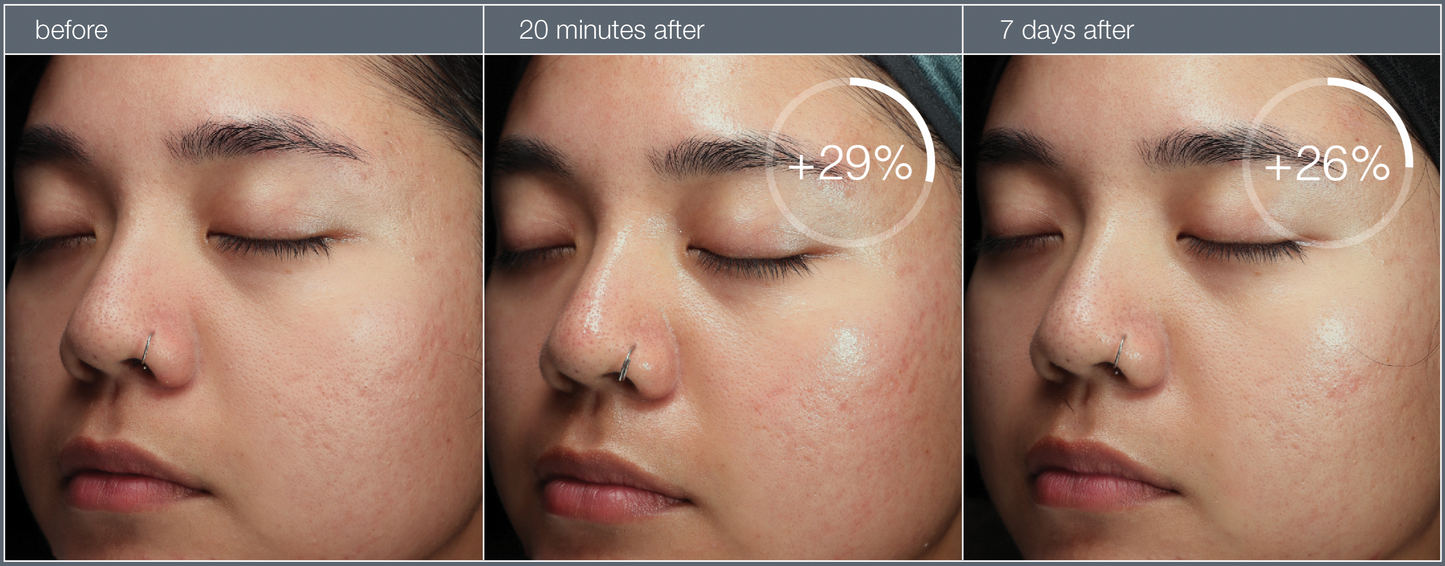 We take skin treatments seriously, which is why we conducted a clinical study with 30 participants. We observed an increase in skin luminosity after one treatment and seven days post-treatment.